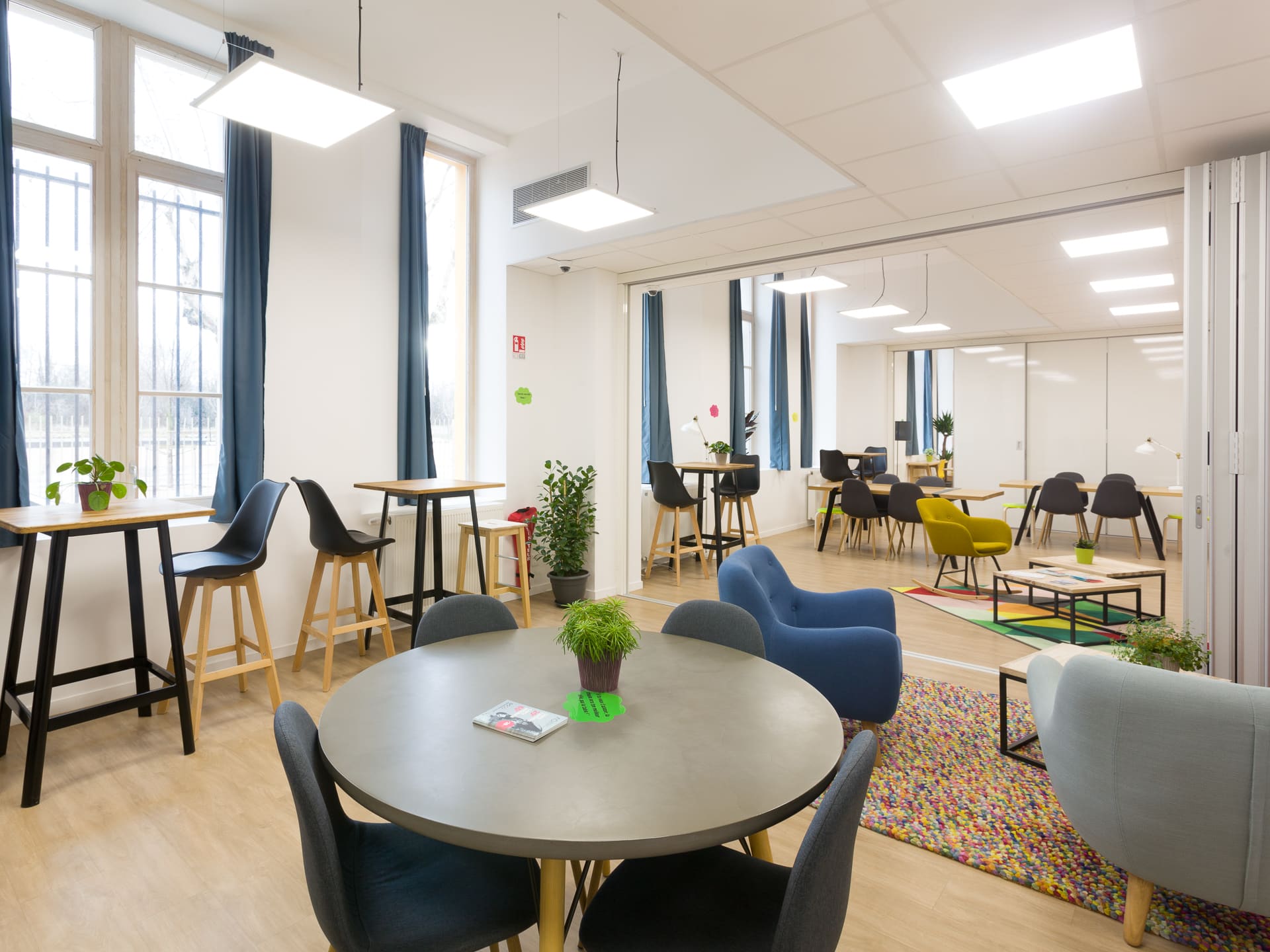 des espaces communs dédiés (salles de travail, coworking, lieux de convivialité),
